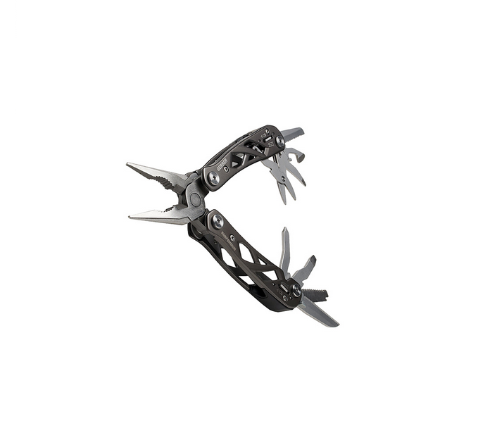 Inspired by the bridges of Gerber’s hometown in Portland, Oregon, the Suspension is an open frame multitool with spring-loaded pliers, SAF.T.PLUS locking system, a fine-edge knife, serrated knife, rough cut saw and more. Housed in a ballistic nylon sheath, it’s a lightweight down-and-dirty workhorse.